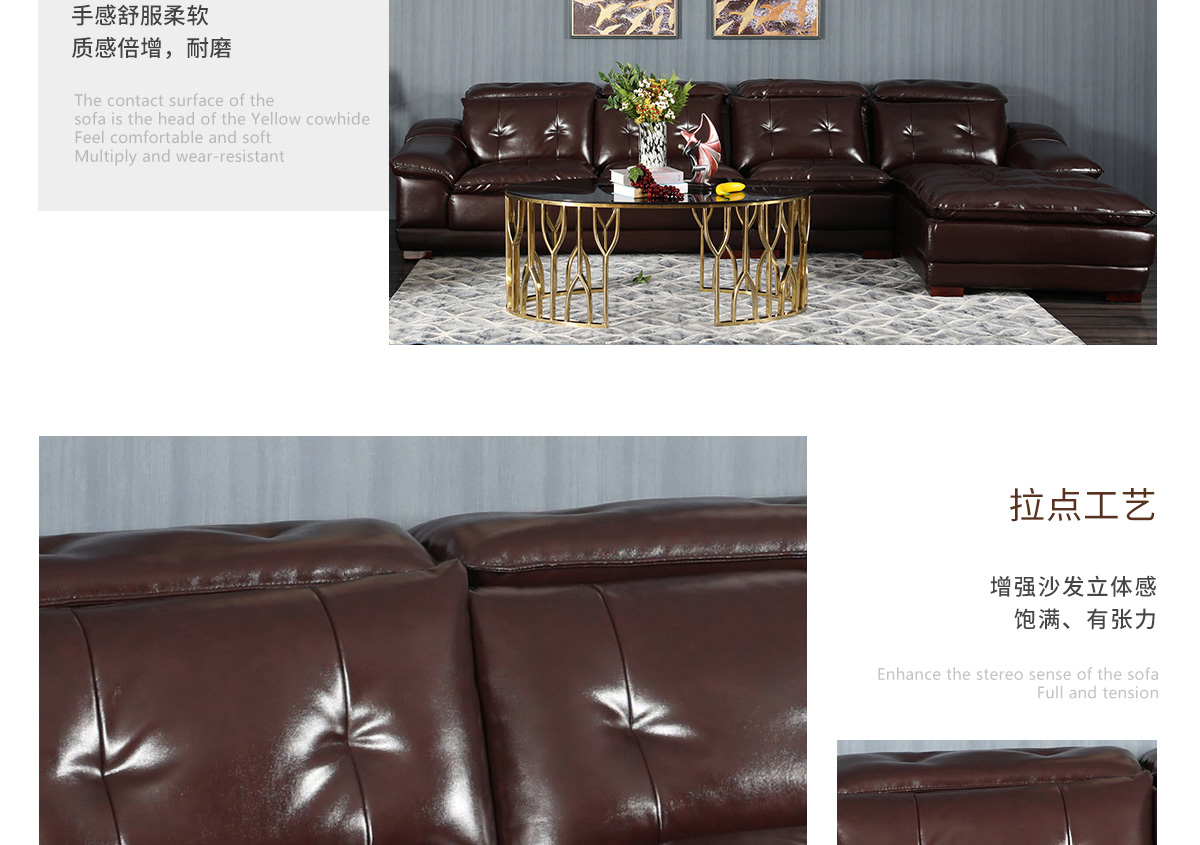 飾面材質:接觸面頭層中厚黃牛皮